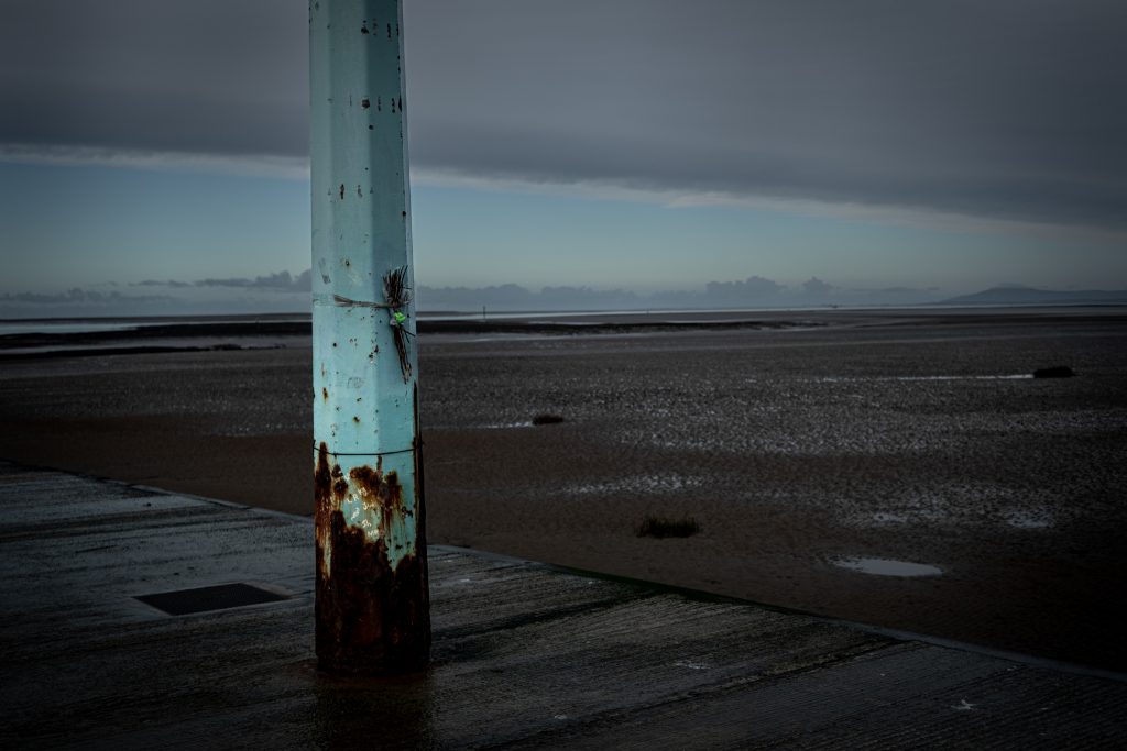 This image introduces mourning as a critical dimension of the project.The rusted post,embedded in the coastal edge at Knott End,operates as both infrastructure and memorial.Its verticality interrupts the horizontal sprawl of the estuary,anchoring grief within a space otherwise defined by movement,erosion and absence.